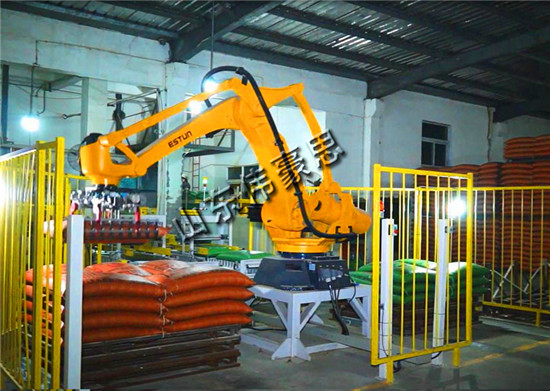 水泥全自動碼垛機械手是研制開發(fā)的新機型,質(zhì)量穩(wěn)定,性價比高。碼垛機械手的程序里所需要定位的只有兩點,1個是抓起點,1個是擺放點,這兩點之間以外的軌道全由電腦來控制,電腦自己會尋找這兩點的合理的軌道來移動,所以教示方法簡單。
