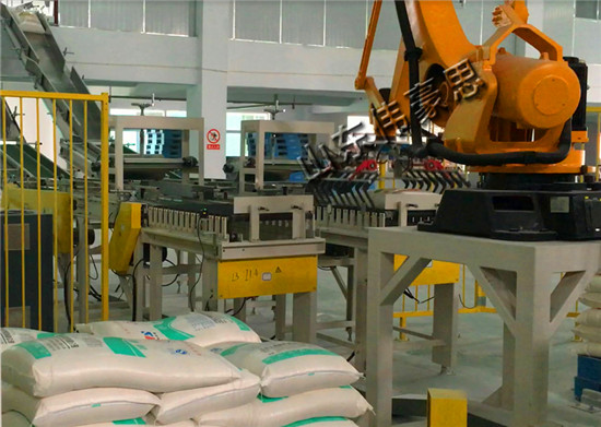 化肥全自動碼垛機械手設(shè)備的能力比普通機械式碼垛、人力都還要高。結(jié)構(gòu)非常簡單,所以故障率低,容易保養(yǎng),維修。主要構(gòu)成零件少,配件少,所以維持費用很低。碼垛機械手可以設(shè)置在狹窄的空間,即可有效的使用。全部控制可在控制柜屏幕上操作即可,操作非常簡單。通用性強:通過更換機械手的抓手即可完成對不同貨物的搬運。