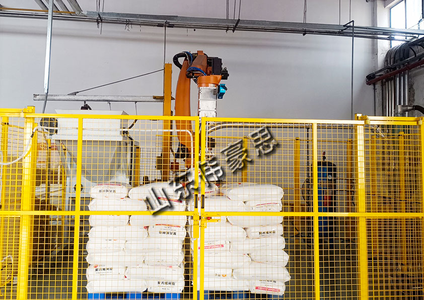 氫鈣粉全自動(dòng)拆垛拆包線抓手取包,作業(yè)美觀大方;配方式作業(yè),拆垛模式可自由編程,配方數(shù)完全滿足生產(chǎn)要求;適用于填裝重量10公斤至70公斤的標(biāo)準(zhǔn)包裝袋;安裝空間可以自由匹配,對(duì)空間要求?。灰子谑褂?,維護(hù)需求低。