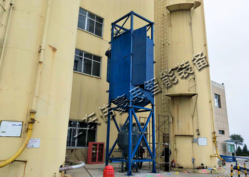 6. 卸料完畢,打開卸料閥操作門,人工系袋后,束緊機(jī)構(gòu)松開,壓袋機(jī)構(gòu)升起,人工操作電動葫蘆起升,吊出空袋。