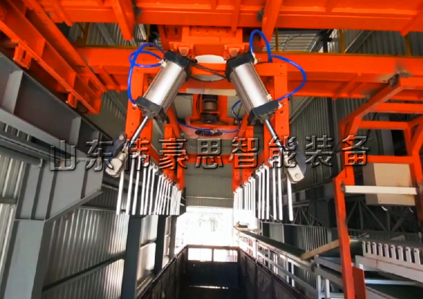 4、全自動(dòng)裝車(chē)系統(tǒng)配備的桁架式或固定式碼垛機(jī)械手使得物料碼垛有序節(jié)省了空間。同時(shí)碼垛的垛型更加結(jié)實(shí)美觀。