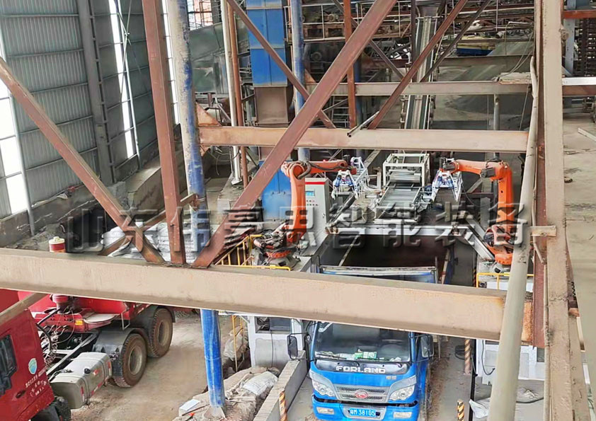 4、全自動裝車系統(tǒng)配備的桁架式或固定式碼垛機械手使得物料碼垛有序節(jié)省了空間。同時碼垛的垛型更加結(jié)實美觀。
