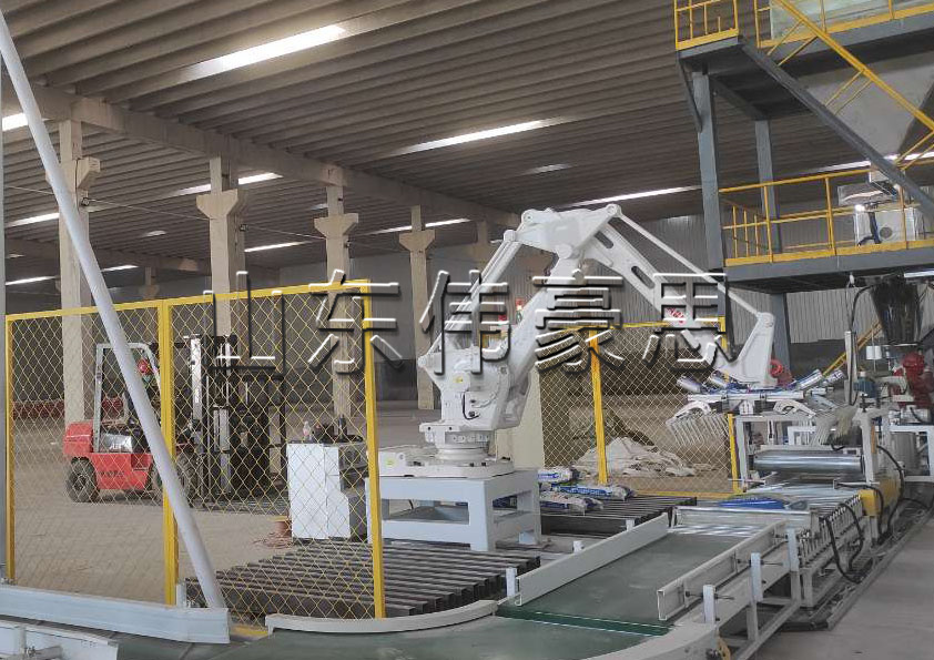 山東偉豪思(15314426573 殷)炭黑顆粒全自動碼垛機是自主將袋料或箱料碼垛在托盤上的設(shè)備,就是將已裝好袋/箱的物料全自動按排列方式碼放在托盤上,并且可在碼垛多層后推出,然后被叉車運往倉庫儲存的自動化設(shè)備。