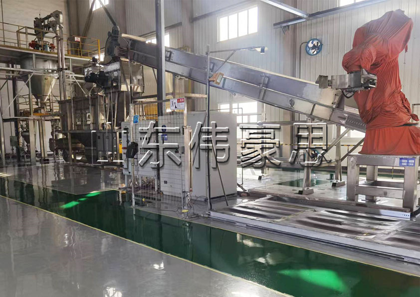 山東偉豪思輕鈣全自動拆包機(jī)器人的特點: