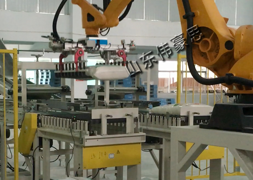 2、 占地面積少。有利于客戶廠房中生產(chǎn)線的布置,并可留出較大的庫房面積。碼垛機械手器人可以設(shè)置在狹窄的空間,即可有效的使用。
