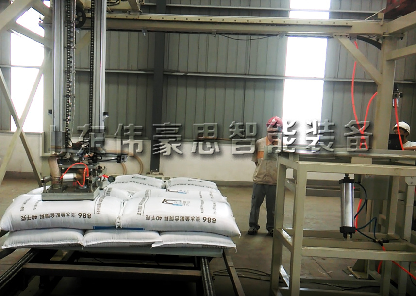 1、使用滾動(dòng)落料的方式裝車堆垛,滾動(dòng)輸送長(zhǎng)度約4米,縱向每次堆5包,橫向每次堆8-9包;