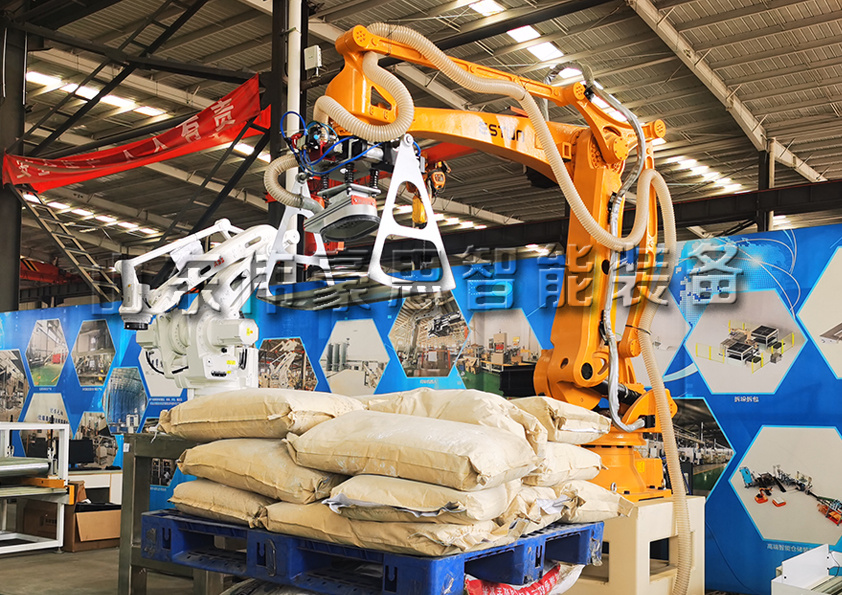 機(jī)器人拆垛拆包機(jī):自動拆包機(jī)前端配套拆垛機(jī)器人上料,實(shí)現(xiàn)拆垛拆包自動化,減少人工,打造無人化智能工廠,還可配套管鏈輸送機(jī),實(shí)現(xiàn)拆包投料無塵化。