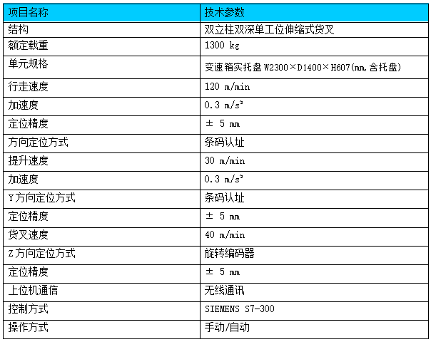 有軌巷道堆垛機是自動化倉儲物流系統(tǒng)中的核心設(shè)備,用于存儲單元出入貨架的搬運作業(yè),具有速度快、效率高、安全可靠等優(yōu)點。堆垛機接收到作業(yè)指令后,可在巷道內(nèi)進(jìn)行水平行走、垂直升降、貨叉左右伸縮和微升降等動作,完成指定貨位的貨物單元的存取作業(yè),并與分設(shè)在巷道端部的輸送設(shè)備或固定交接貨臺進(jìn)行貨物單元的交接。堆垛機通過倉庫設(shè)備管理系統(tǒng)(WCS)與上位監(jiān)控管理系統(tǒng)(WMS)聯(lián)機組態(tài)后,與地面輸送系統(tǒng)、高層貨架和托盤等一并組成了完整的自動化倉儲物流系統(tǒng),從而實現(xiàn)貨物存取、傳輸和分揀等。