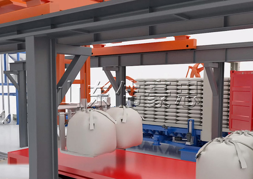 3) 自動裝車機將噸包放在車廂指定位置,自動裝車機的裝車叉具有護包、整形能力;